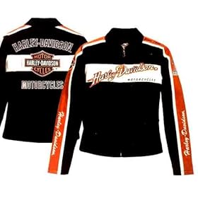 Harley Davidson Women's Prestige Cotton Jacket. 100% Cotton, water-resistant coating. Zipper front. Snap-down collar. Polly-twill lining. Action back. Snap cuffs. Two hand-warmer pockets and one inside pocket. Custom hardware.