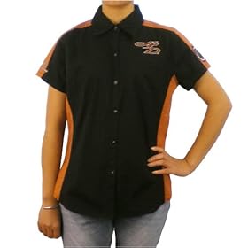 Womens Harley Davidson Racing black and orange short sleeve shirt